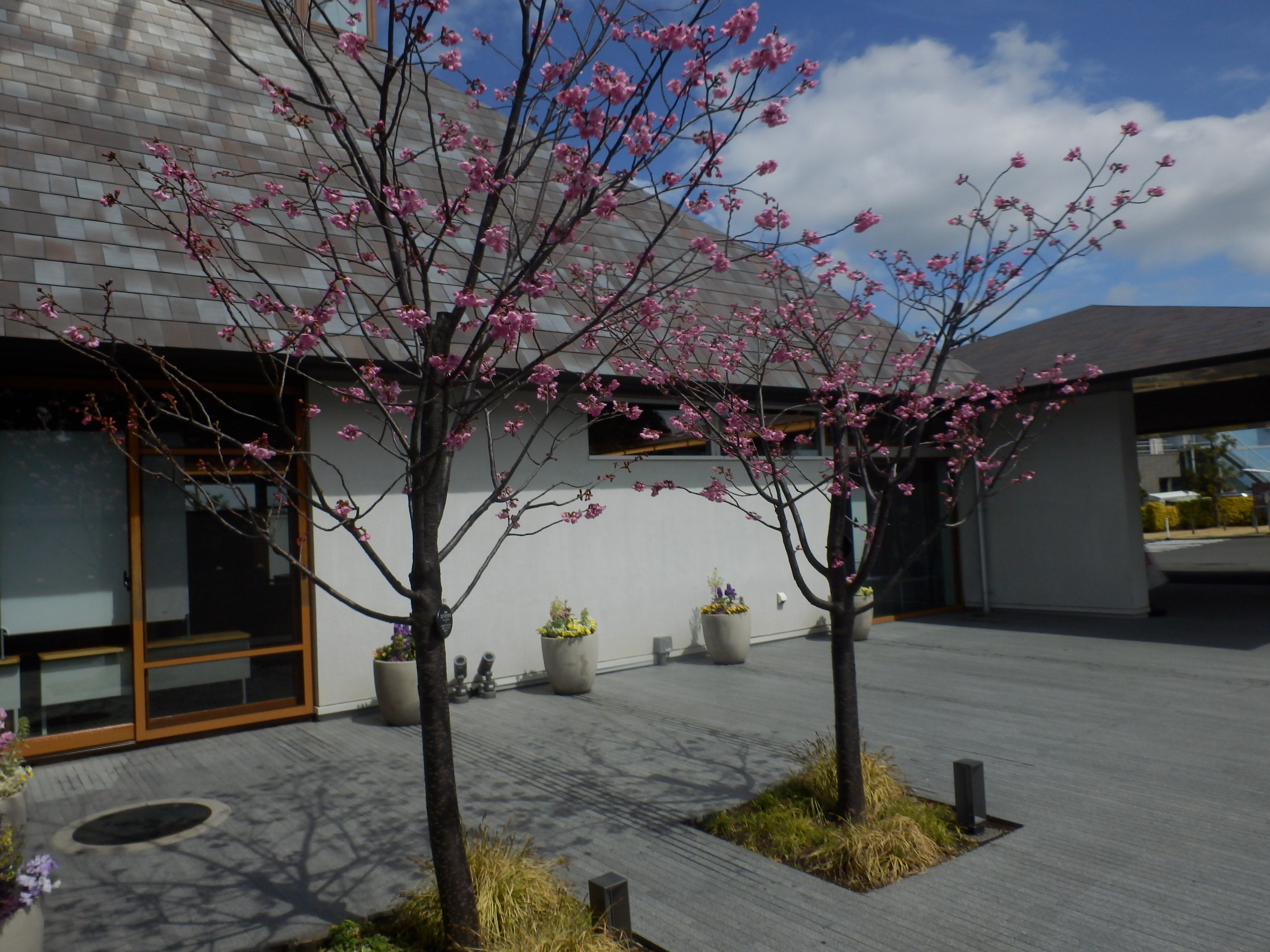 合葬式献花台入口のヨコハマヒザクラが開花しました。
