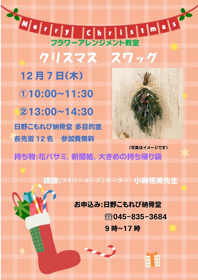 【募集】12月7日(木) ✨フラワーアレンジメント教室✨