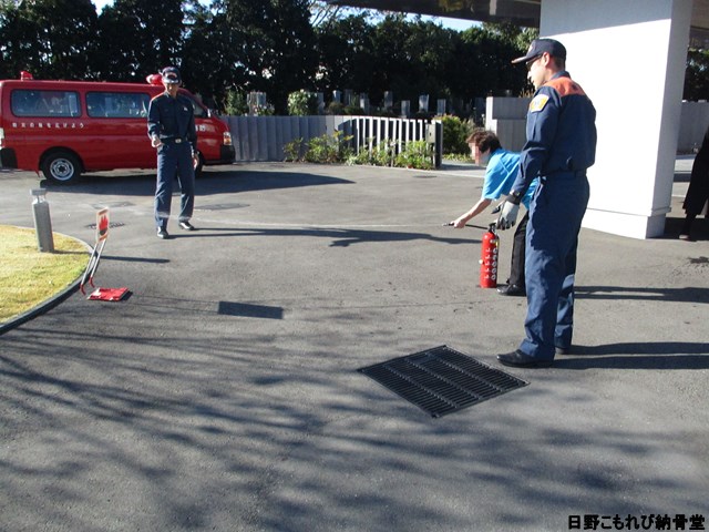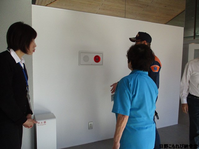 ・火災報知器・火災受信盤 ・消火器の説明等を受け、最後に水消火器を使い実際に消火訓練をしました。