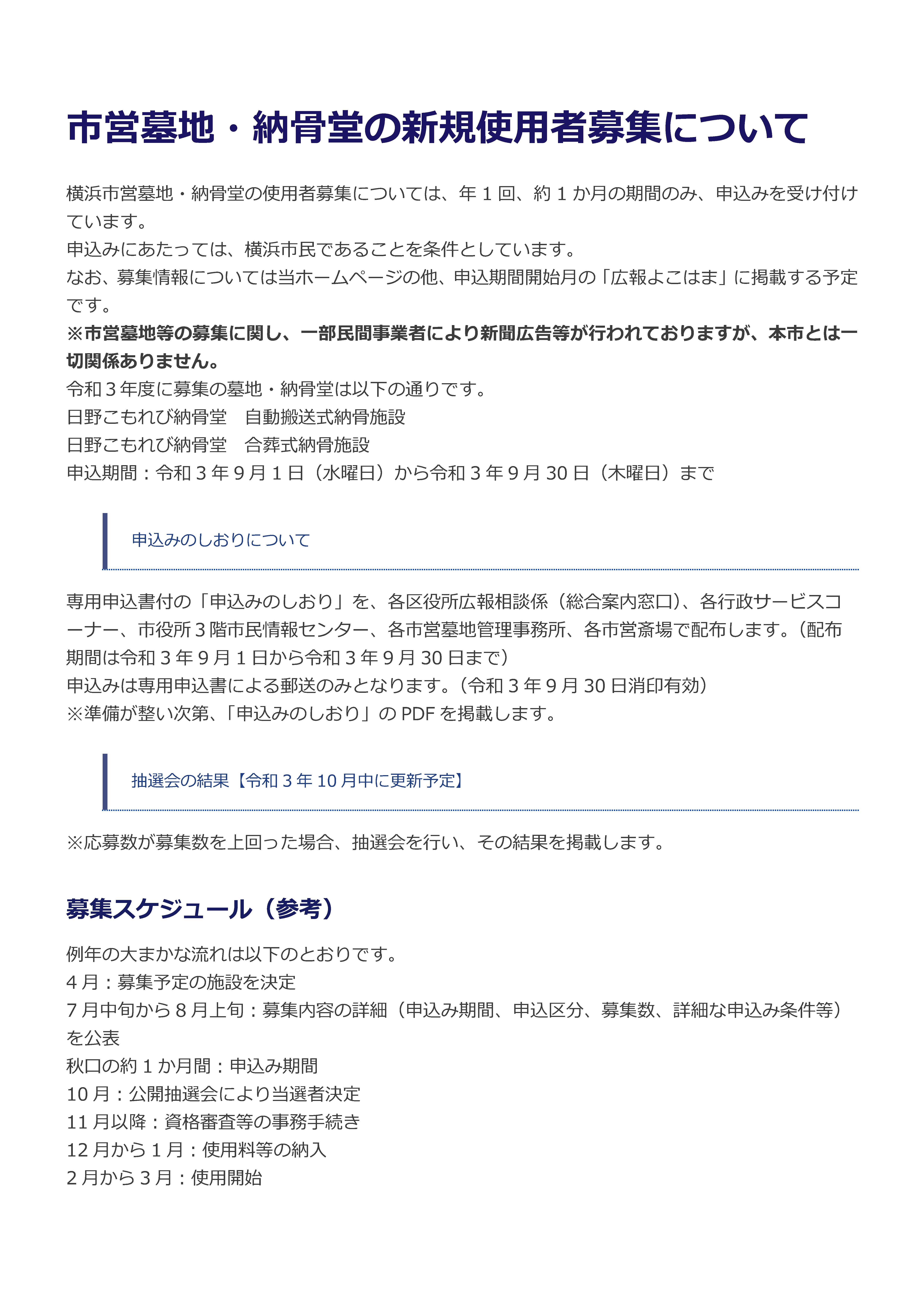 令和3年度 市営墓地・納骨堂の新規使用者募集について