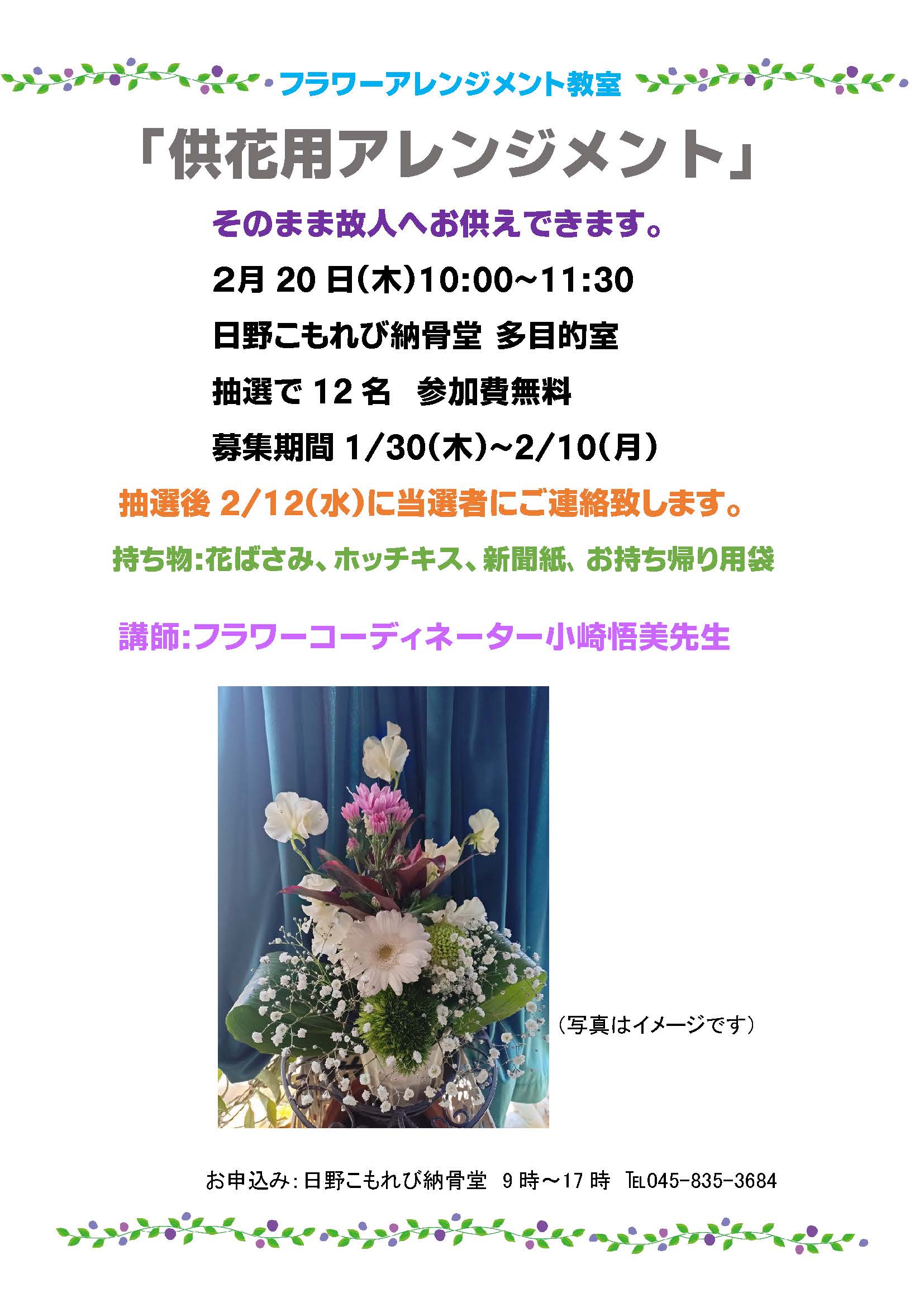募集 2月20日(木) 「フラワーアレンジメント教室」