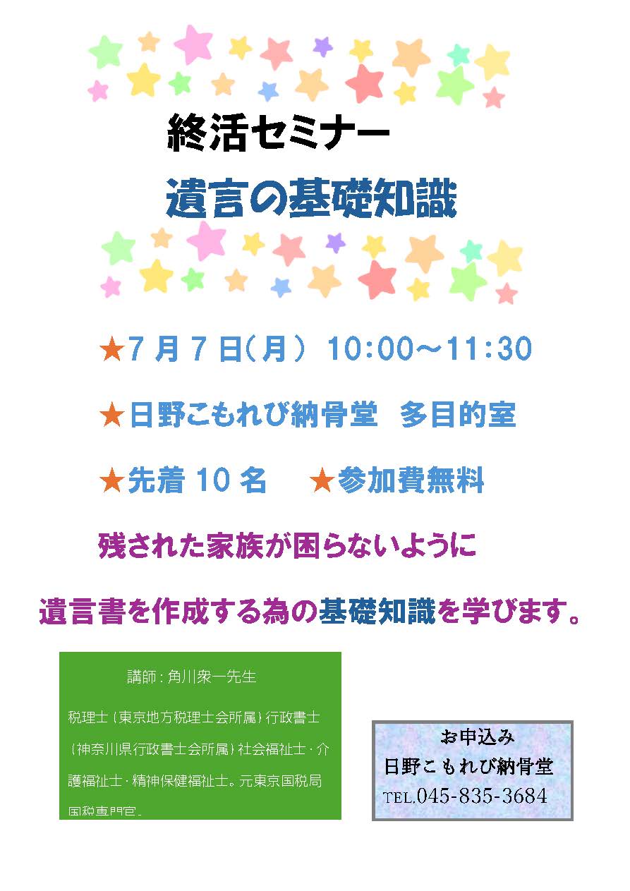 募集 7月7日(月) 終活セミナー