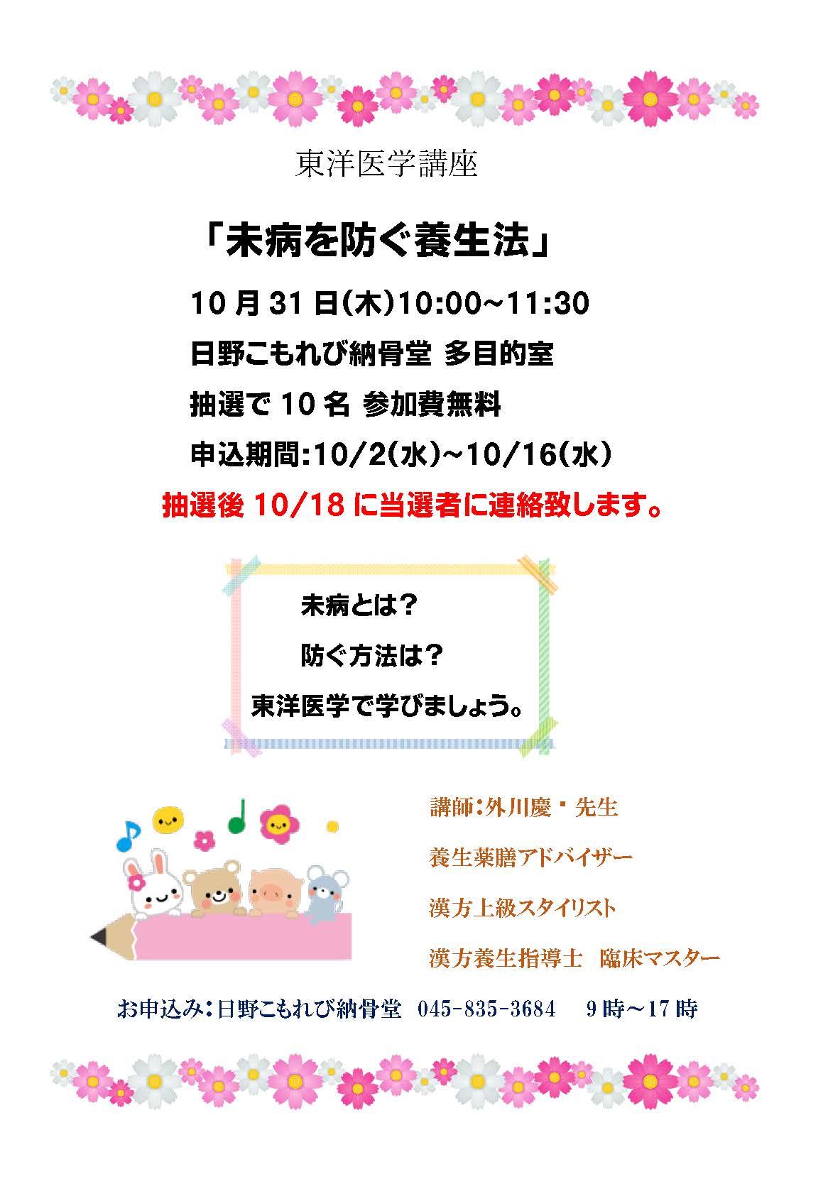 募集 10月31日 「東洋医学講座」