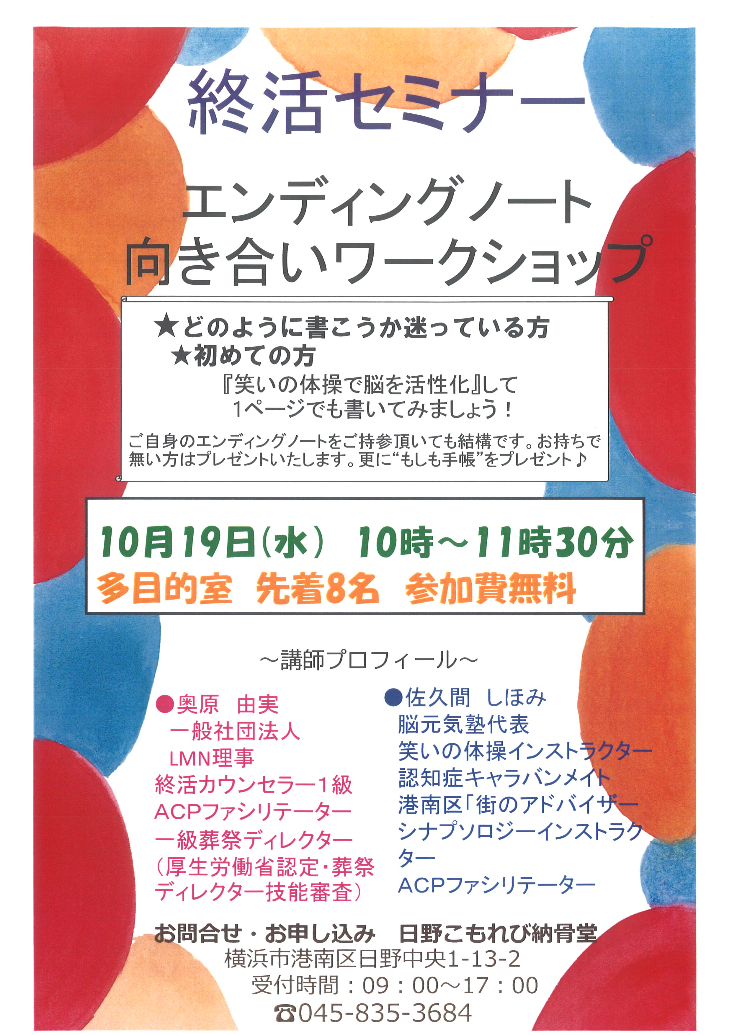 申込先:日野こもれび納骨堂管理事務所 ☎045-835-3684