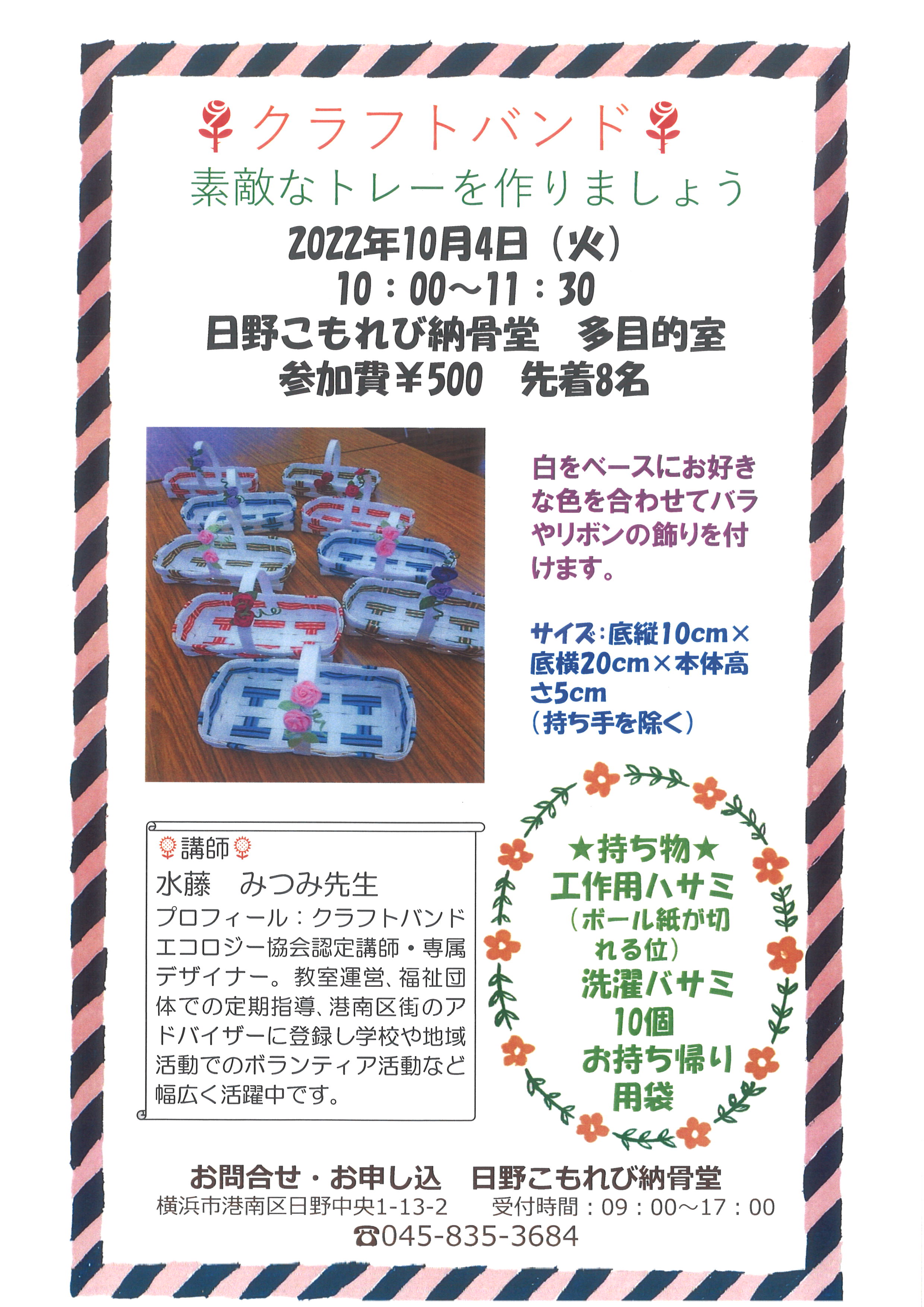 申込先:日野こもれび納骨堂管理事務所 ☎045-835-3684