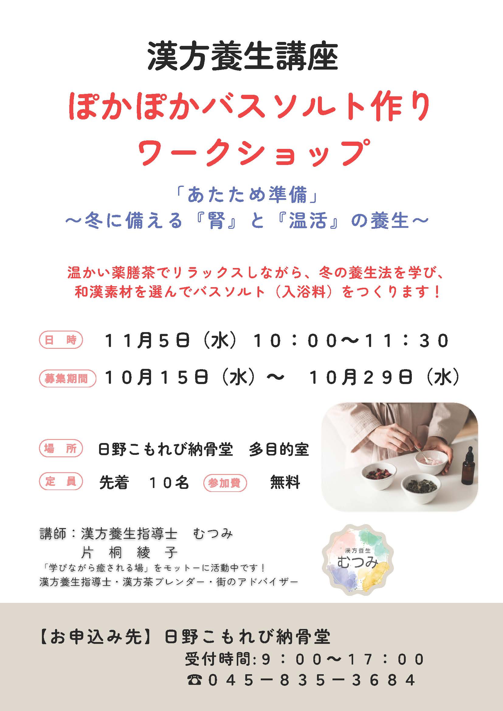 体の土台を整える「養生法」を薬膳茶を頂きながら、お話しします。