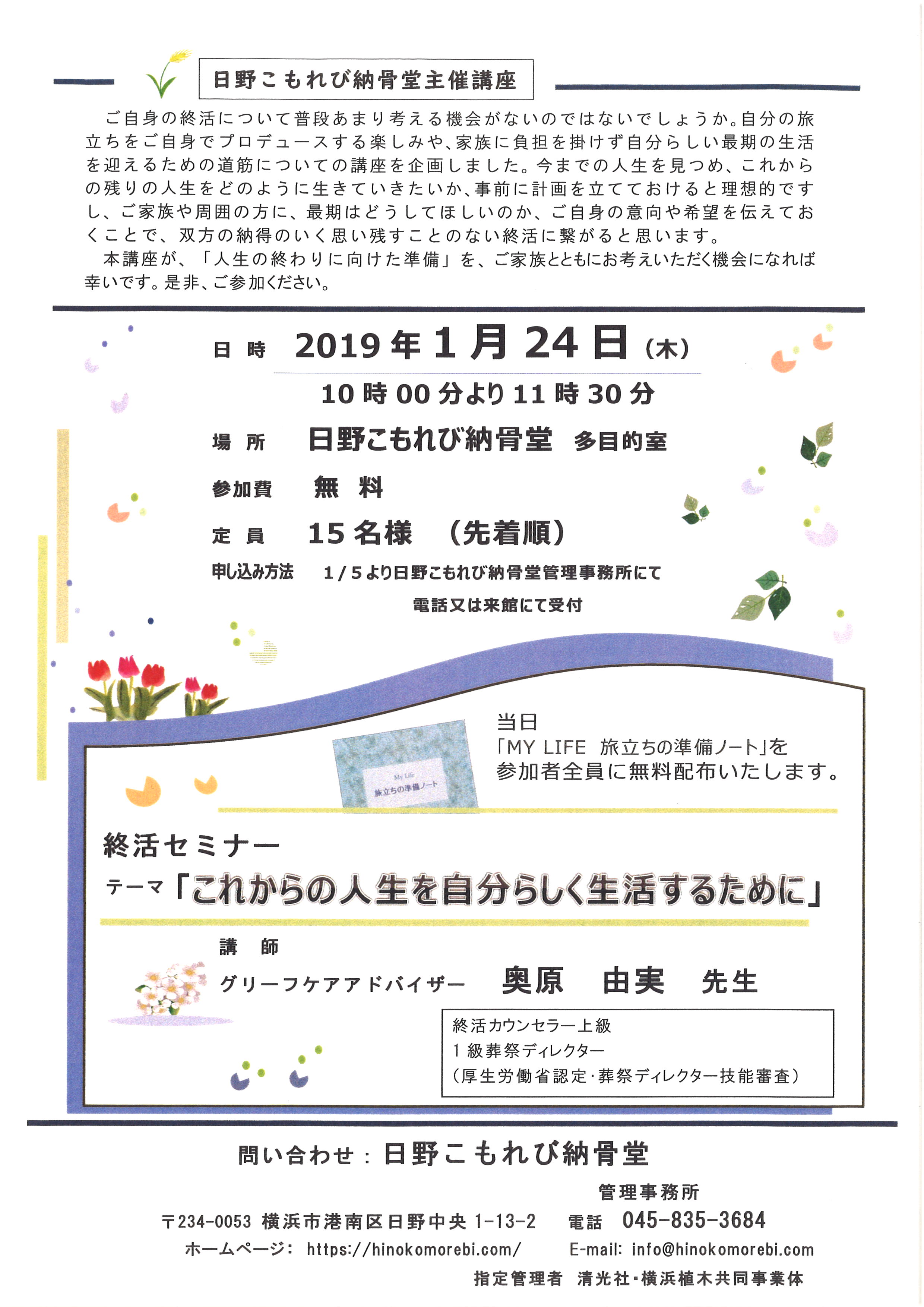 指定管理者の自主事業として、日野こもれび納骨堂主催「無料終活セミナー」
