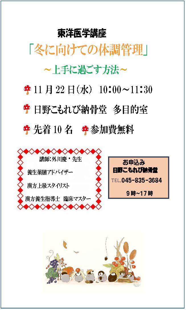 【募集】11月22日(水) ♨東洋医学講座♨