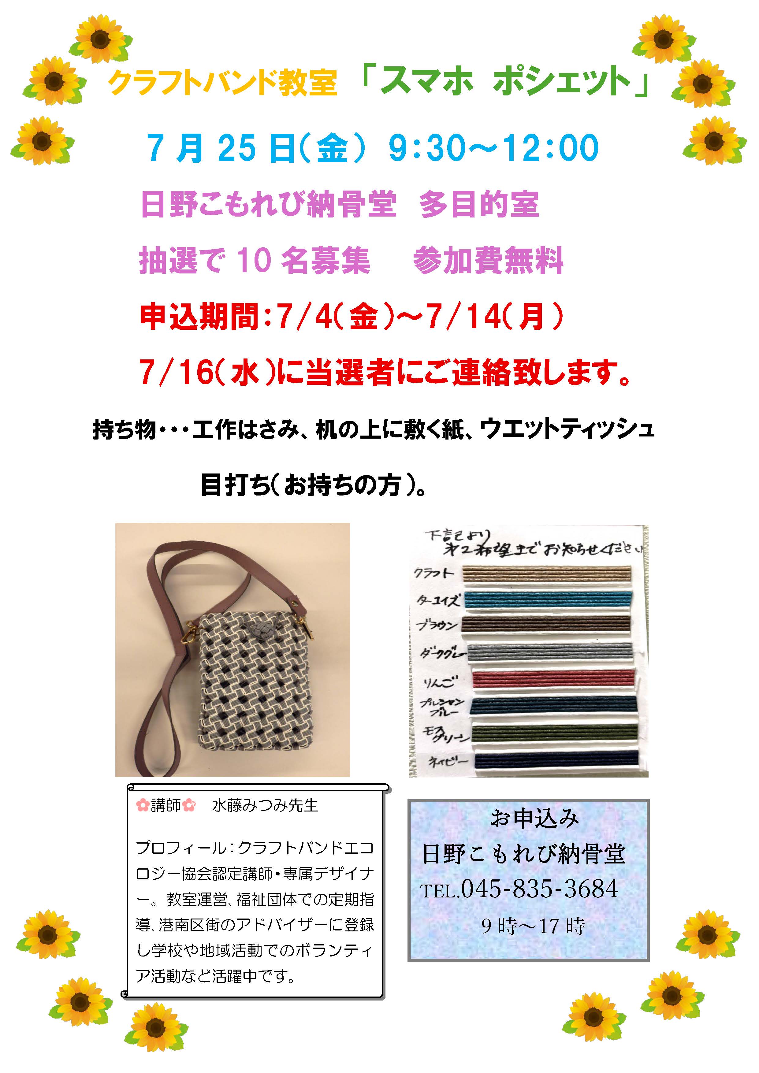 募集 7月25日(金)クラフトバンド教室