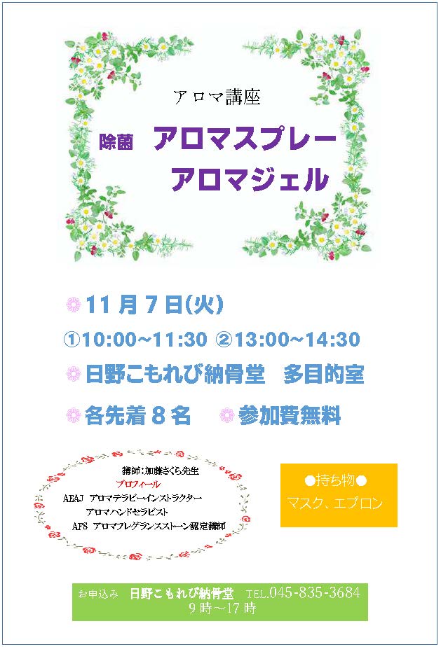 【募集】11月7日(火)🌼アロマ講座🌼