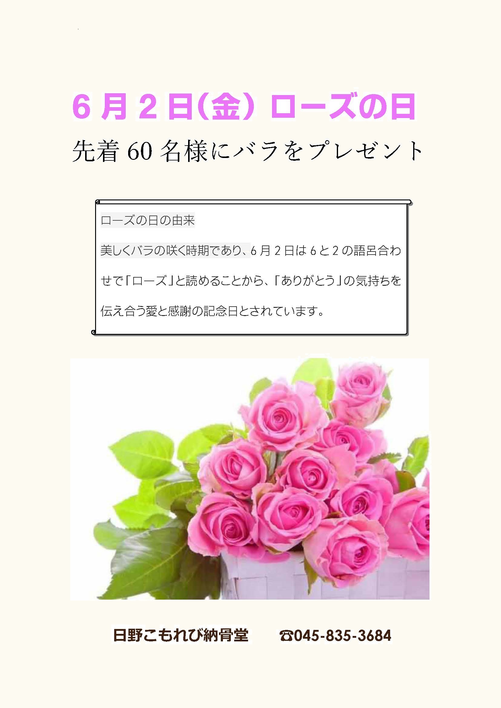 6月2日は6と2の語呂合わせで「ローズの日」とあるのにちなんで、