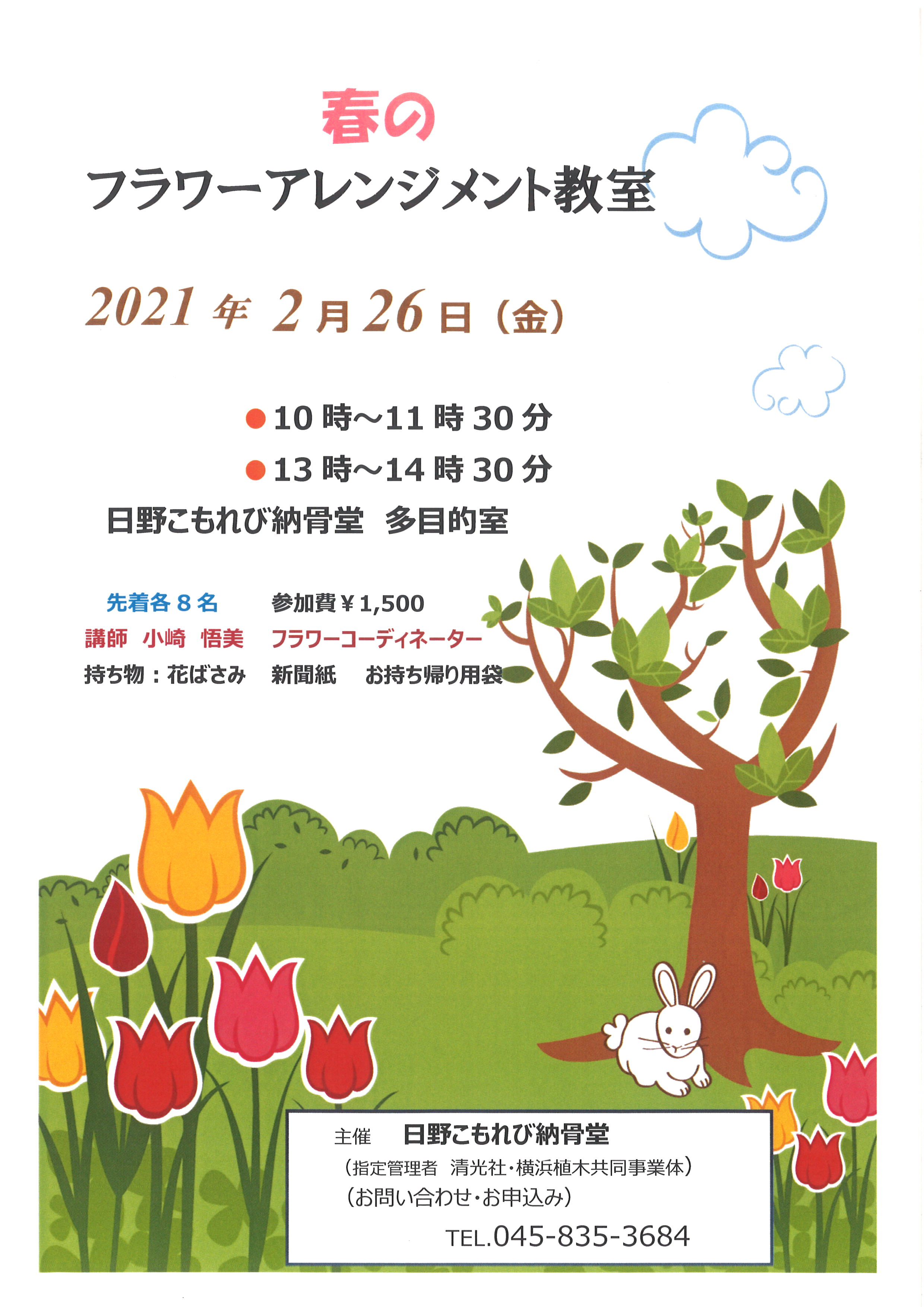 指定管理者の自主事業として、恒例となりました日野こもれび納骨堂主催「フラワーアレンジメント教室」 を開催致します。