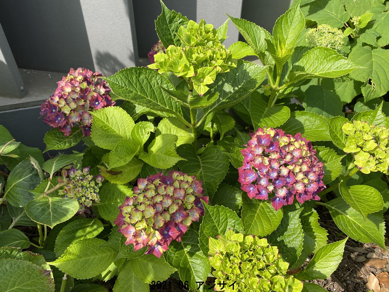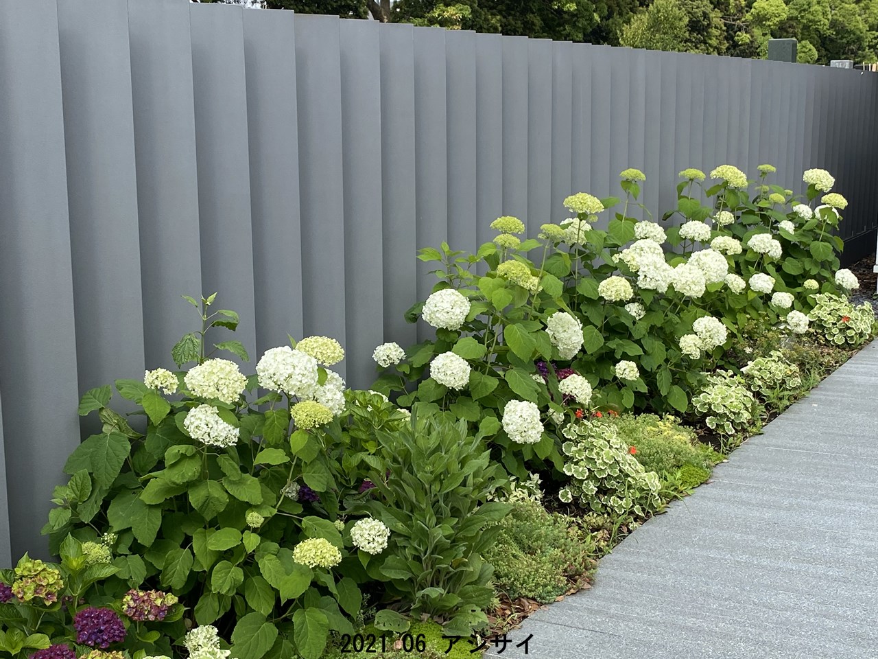 梅雨に入り、敷地内には何種類かのアジサイがあちこちで咲いています。