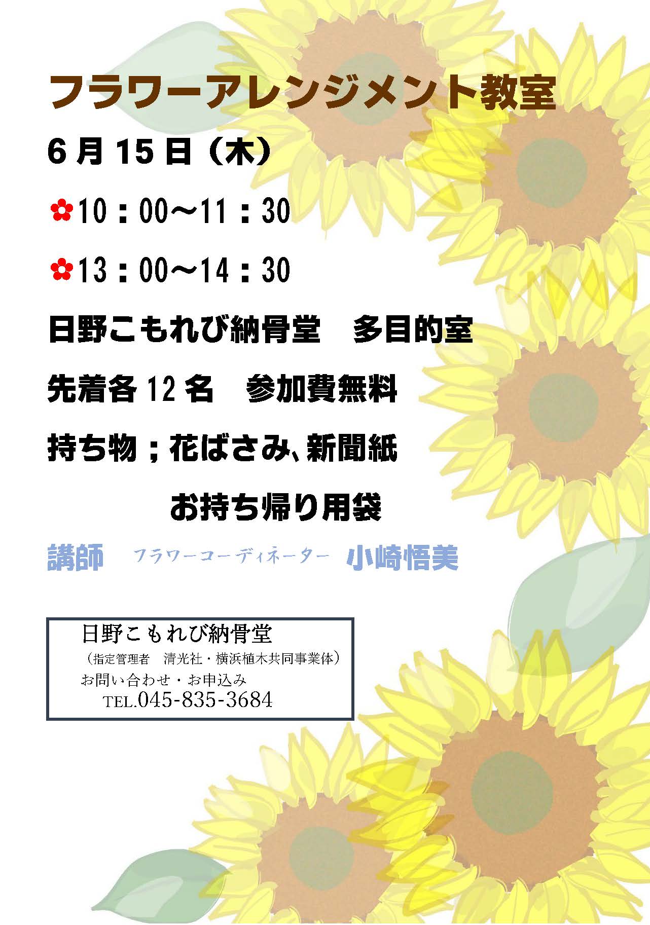 6月15日(木) 【募集】🌻初夏のフラワーアレンジメント教室🌻