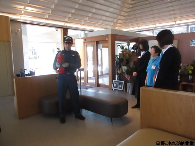・火災報知器・火災受信盤 ・消火器の説明等を受け、最後に水消火器を使い実際に消火訓練をしました。