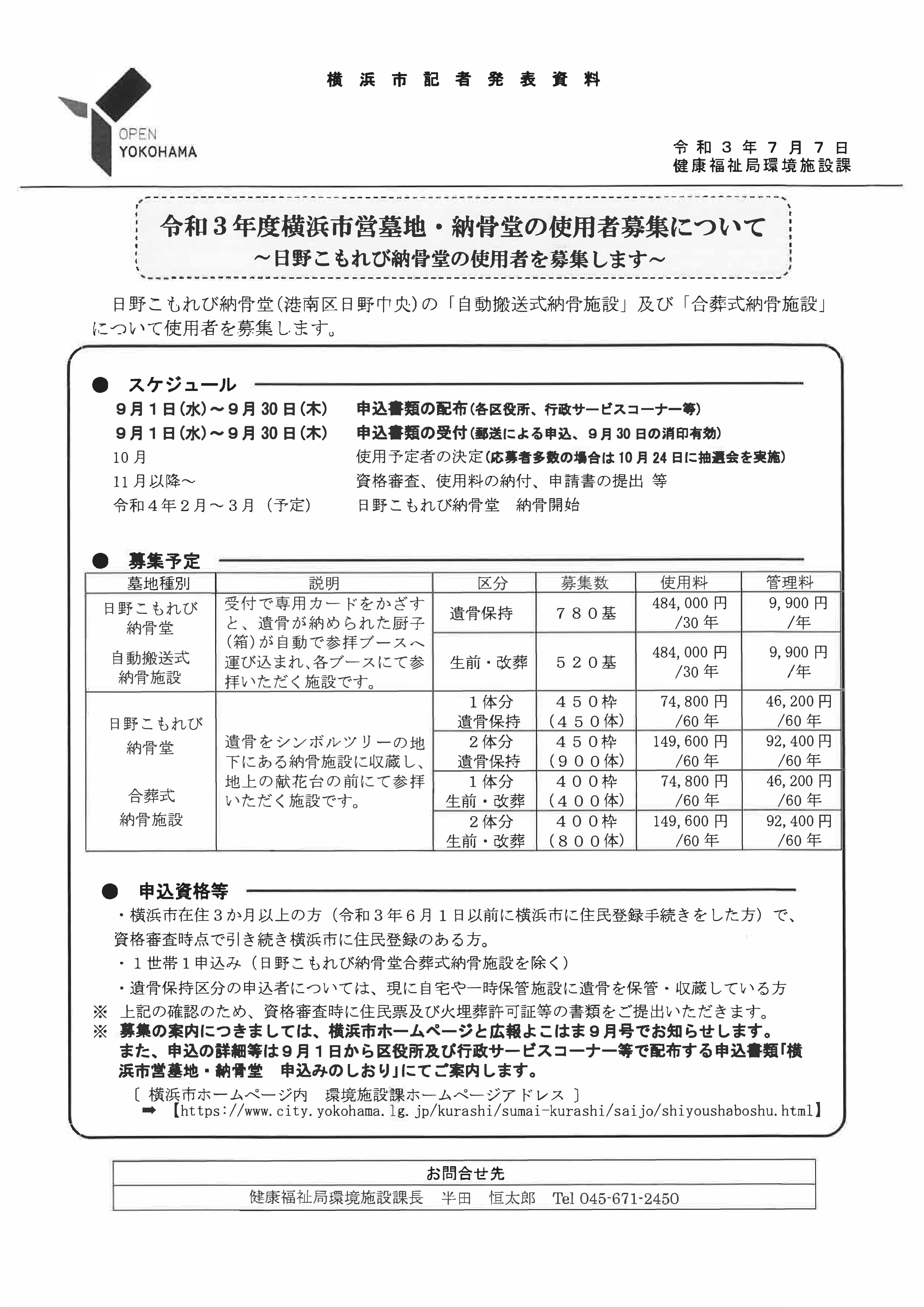 令和3年度 市営墓地・納骨堂の新規使用者募集について