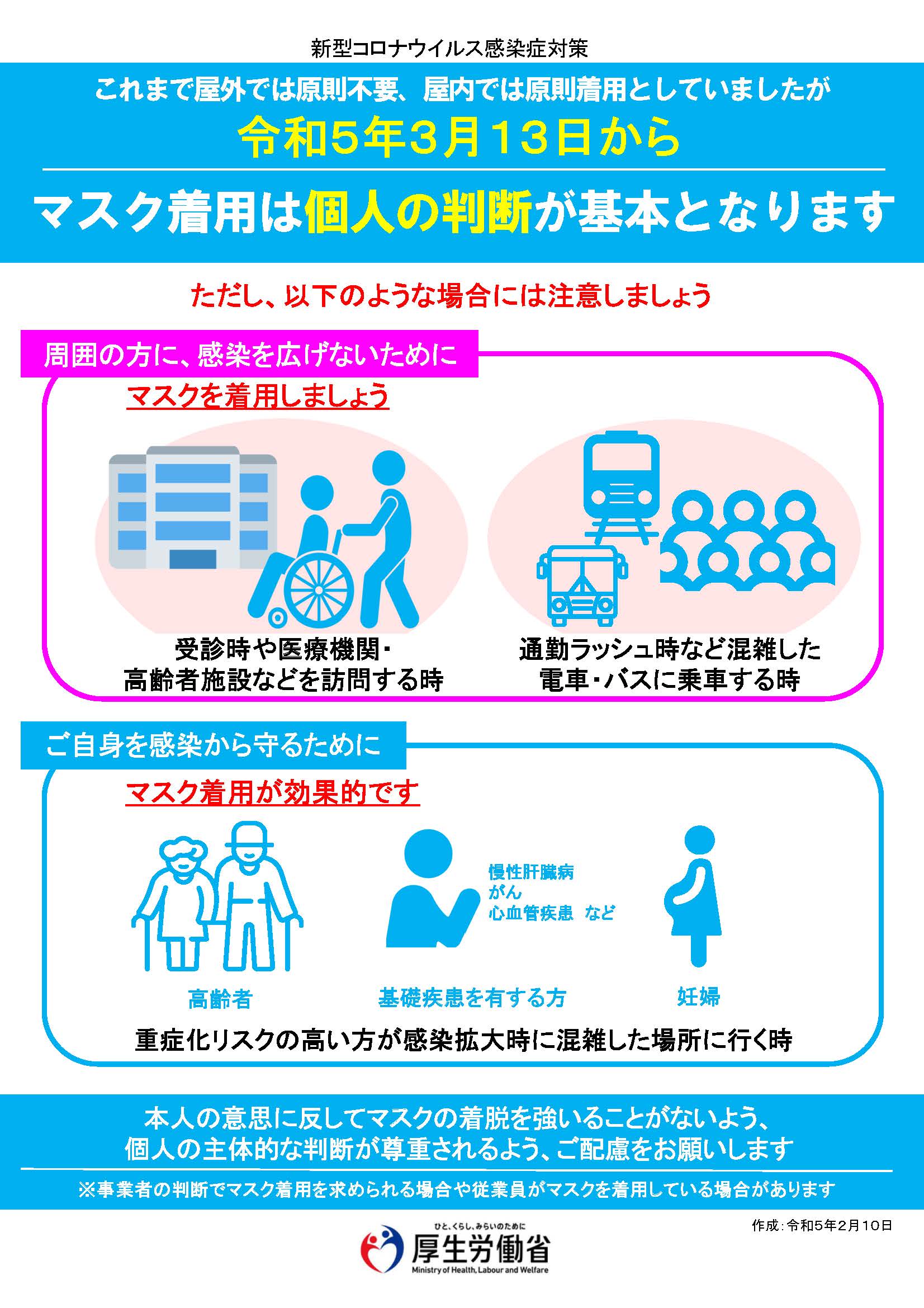 5年3月13日(月曜日)からは、マスク着用について、各個人のご判断にゆだねられる