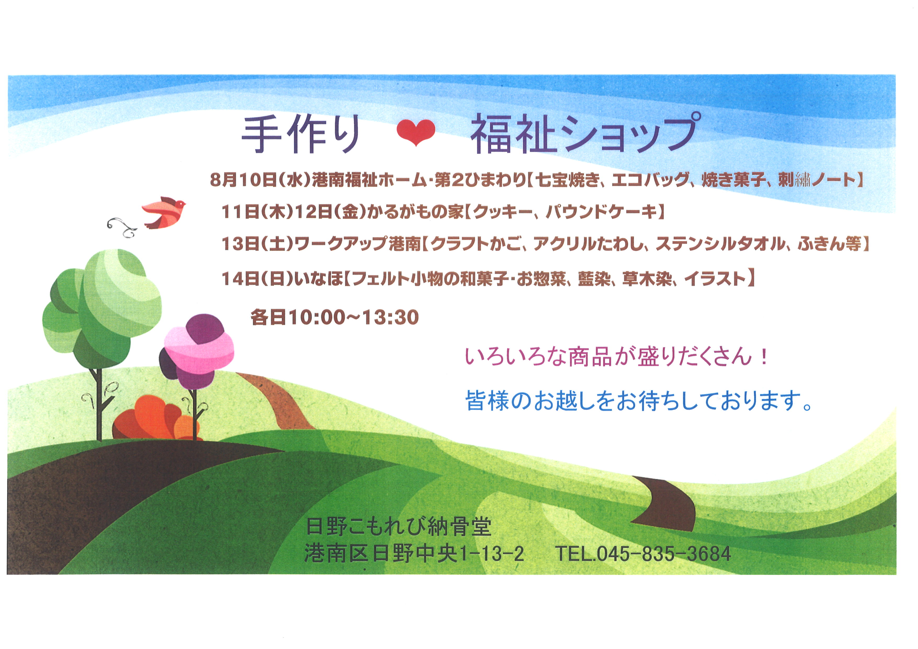 🥒🥒🥒8月お盆期間🍆🍆🍆福祉ショップ開催のお知らせ🏠