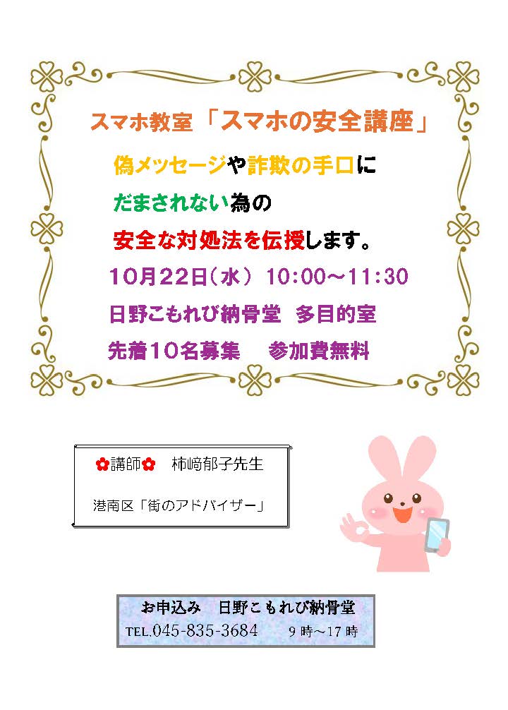 募集 「スマホ教室」 10月22日(水)