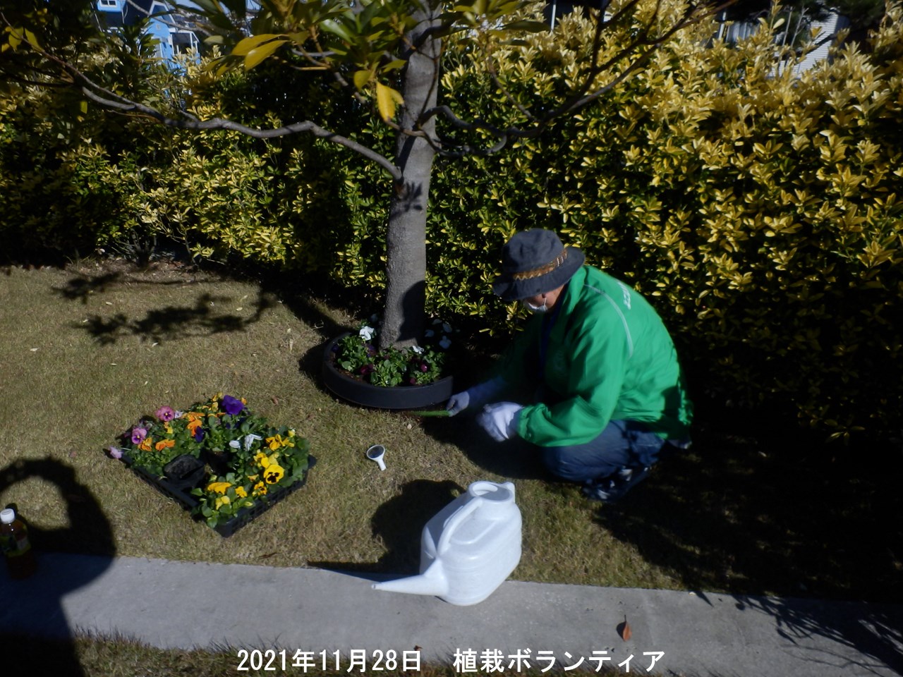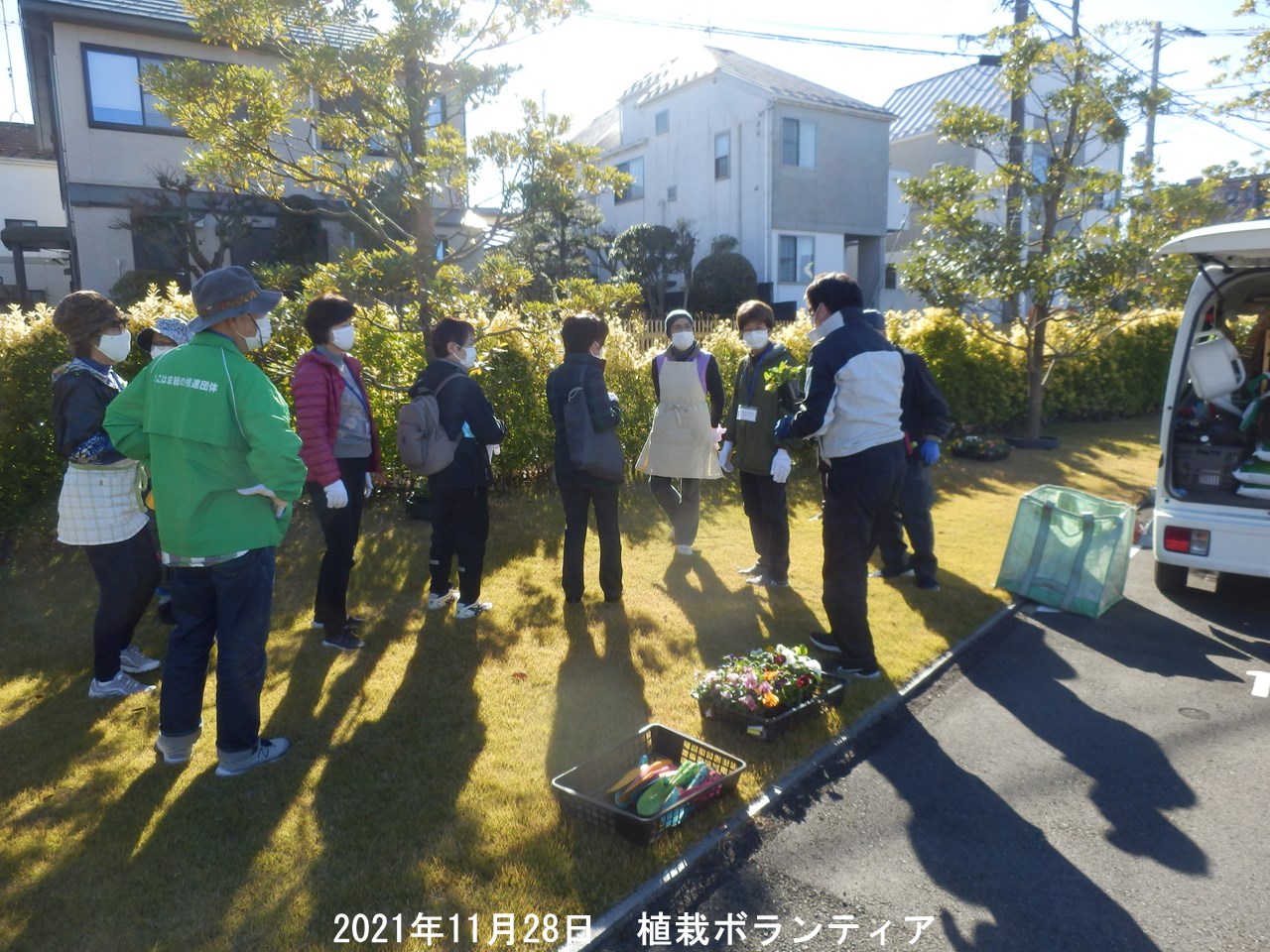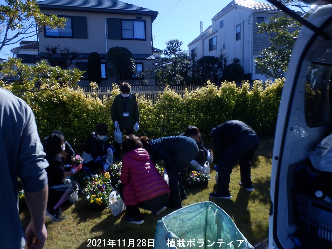 協力して頂けるボランティアさんを募集し晴天の中、昨日28日(日)花の植え込みを行いました。 近隣を中心に11名の方に参加して頂きました。