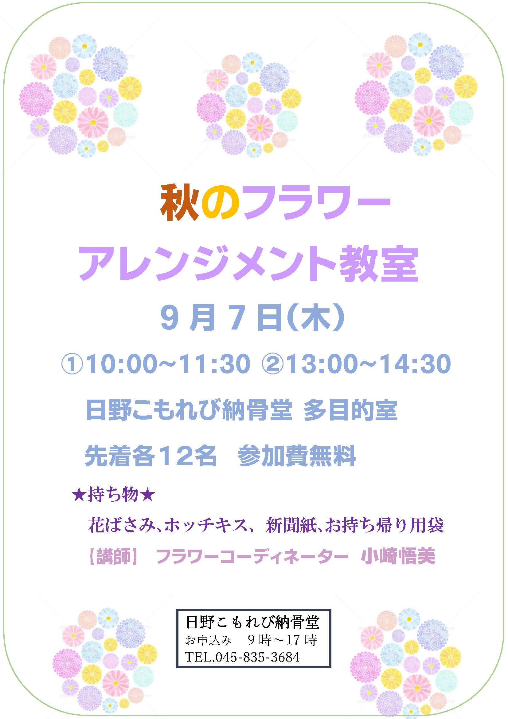 9月7日(木)🌼秋のフラワーアレンジメント教室🌼