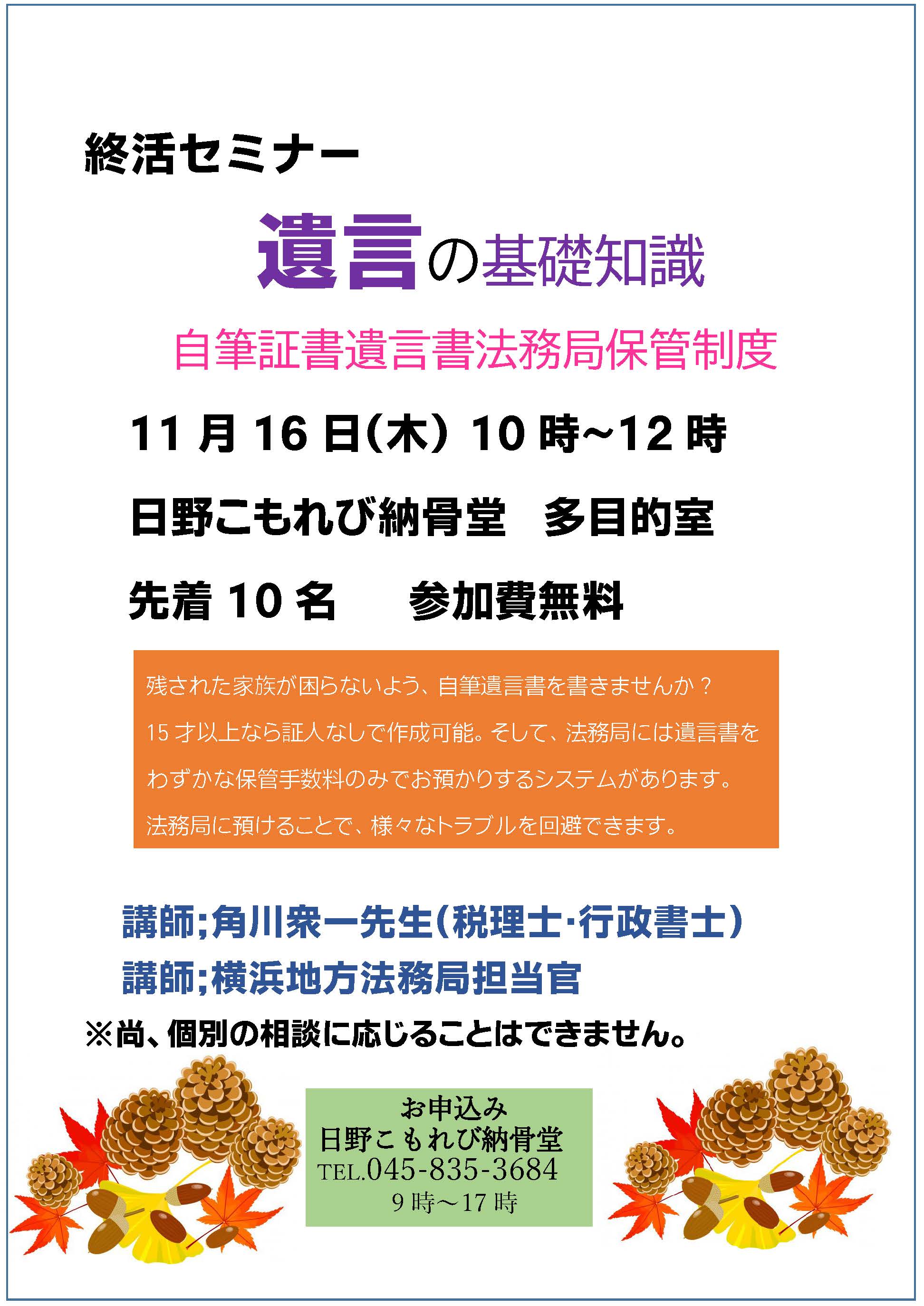 【募集】11月16日(木) 終活セミナー😊遺言の基礎知識😊